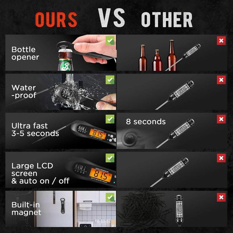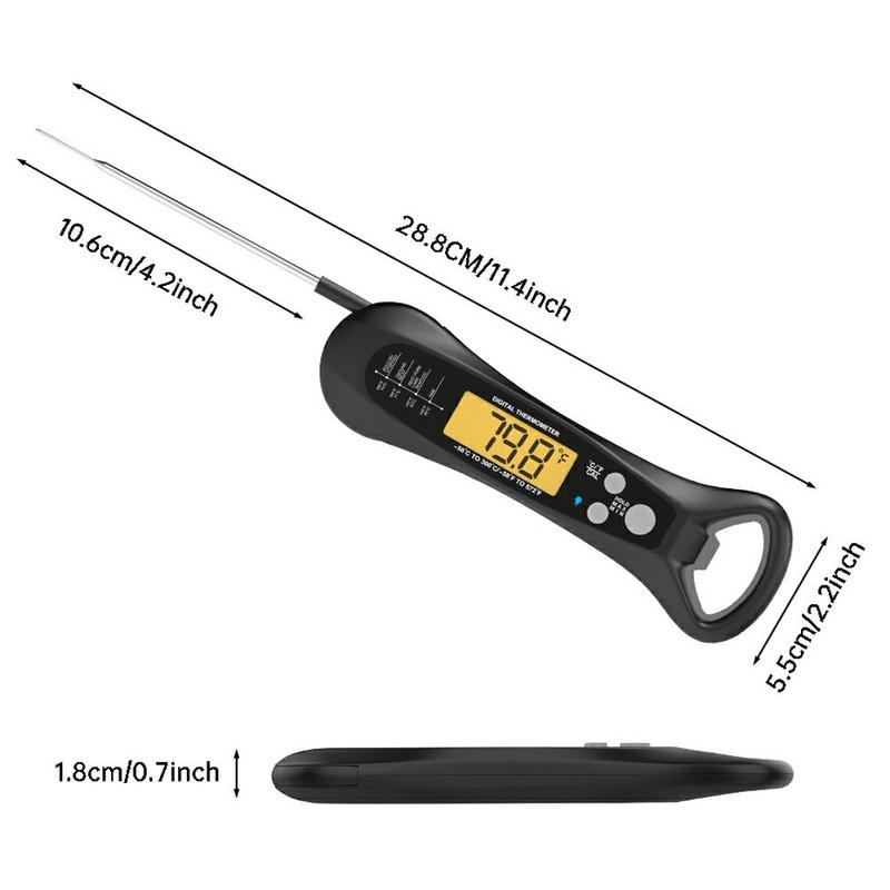 Waterdichte opvouwbare digitale voedselthermometer voor barbecueën en koken - 2-3 seconden instant meting, -50 °C tot 300 °C, LCD-scherm met achtergrondverlichting, magneet en flesopener, IP67