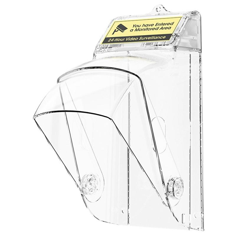 De hoes heeft een 30° draaibaar beschermend schild waarmee je de hoek kunt aanpassen aan de weersomstandigheden. Bij droog weer behoudt het een duidelijk zicht op de camera, terwijl het bij regen of sneeuw kan worden gedraaid om extra bescherming te bieden zonder de functionaliteit te belemmeren.