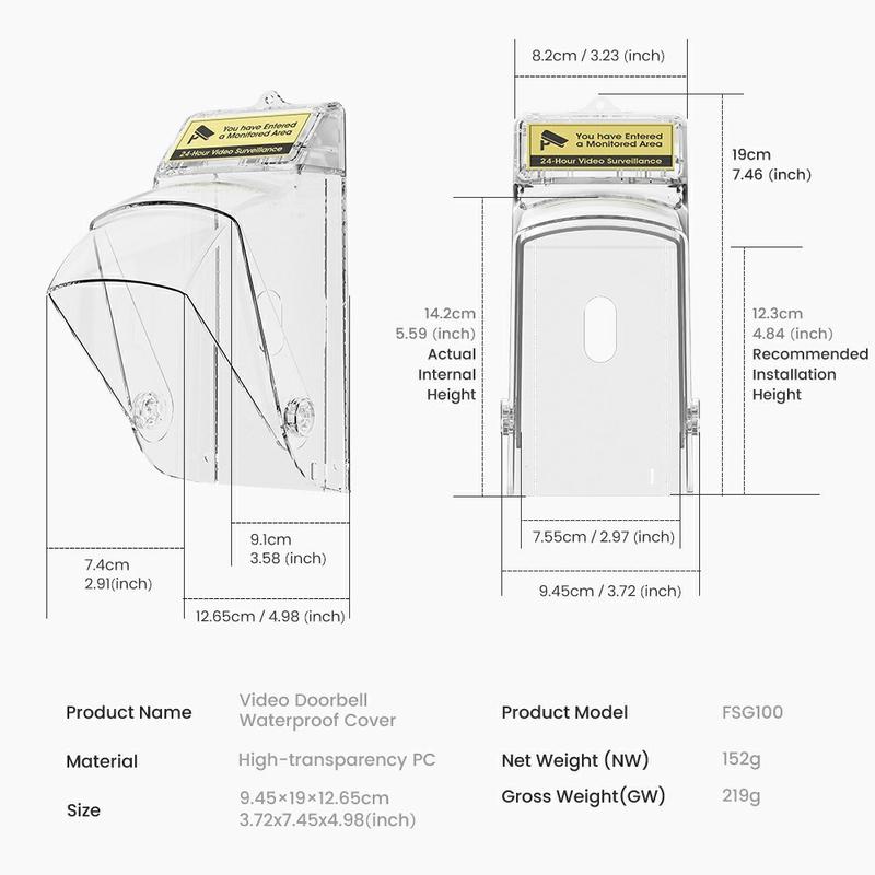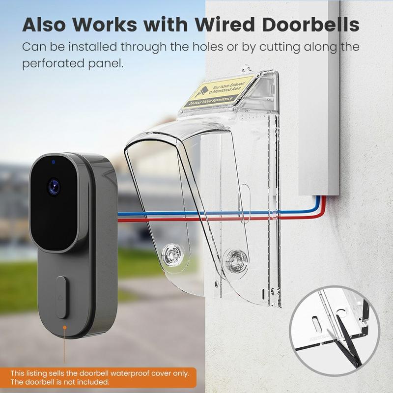 De waterdichte deurbelhoes is ontworpen om je videodeurbel te beschermen tegen regen, sneeuw en stof. Het is geschikt voor zowel binnen- als buiteninstallaties en zorgt voor betrouwbare prestaties en duidelijke zichtbaarheid van de camera, zelfs in moeilijke weersomstandigheden.
