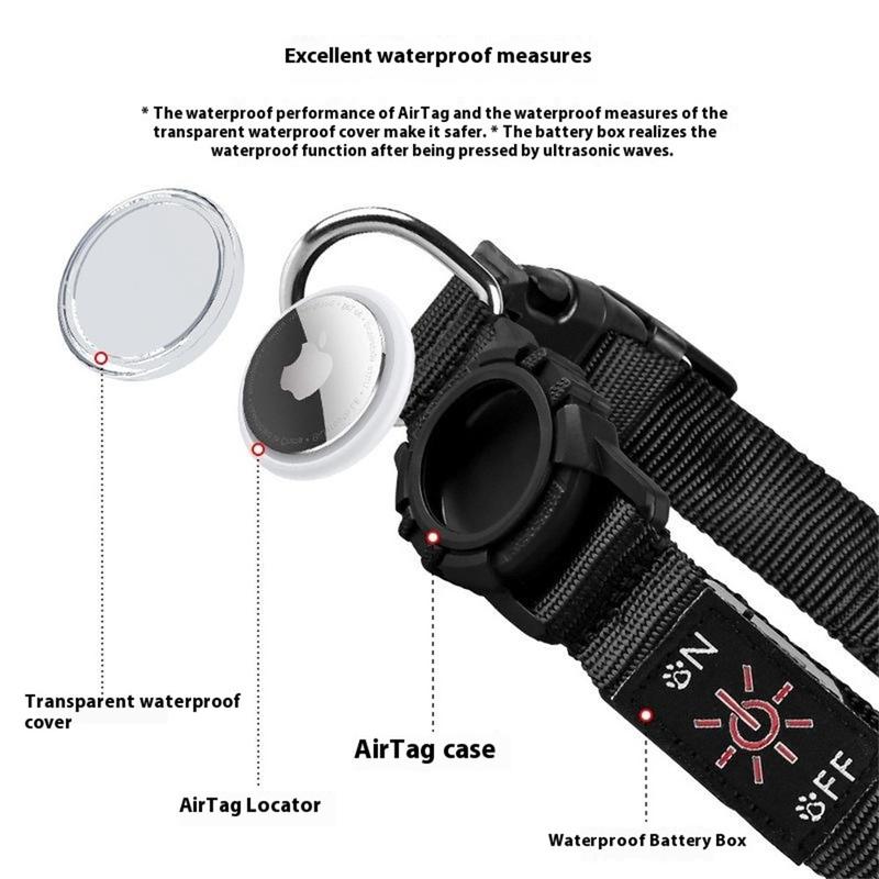 LED hondenhalsband met hoesje voor Apple AirTag 1/2 - Waterdichte anti-verloren halsband met oplaadbaar licht