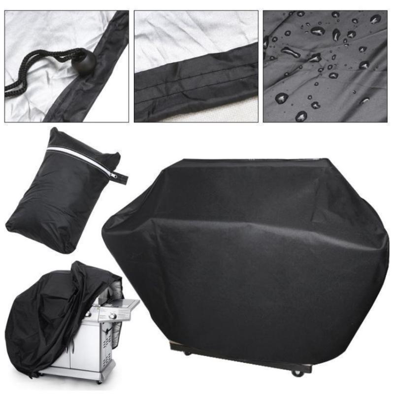 Deze zwarte BBQ-grillhoes blokkeert UV-stralen, is kleur- en kleurvast en beschermt tegen regen, ijzel, sneeuw, water en meer.