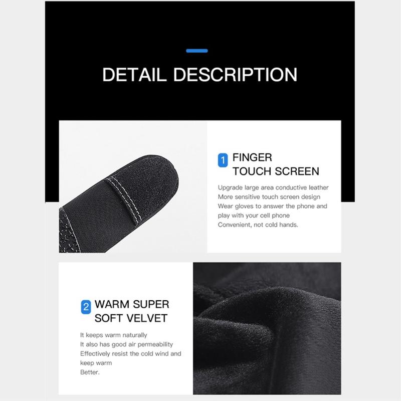 - Geschikt voor touchscreen: Uitgerust met geleidend materiaal op de vingertoppen, zodat u smartphones, tablets en andere apparaten met touchscreen kunt gebruiken zonder de handschoenen uit te doen.