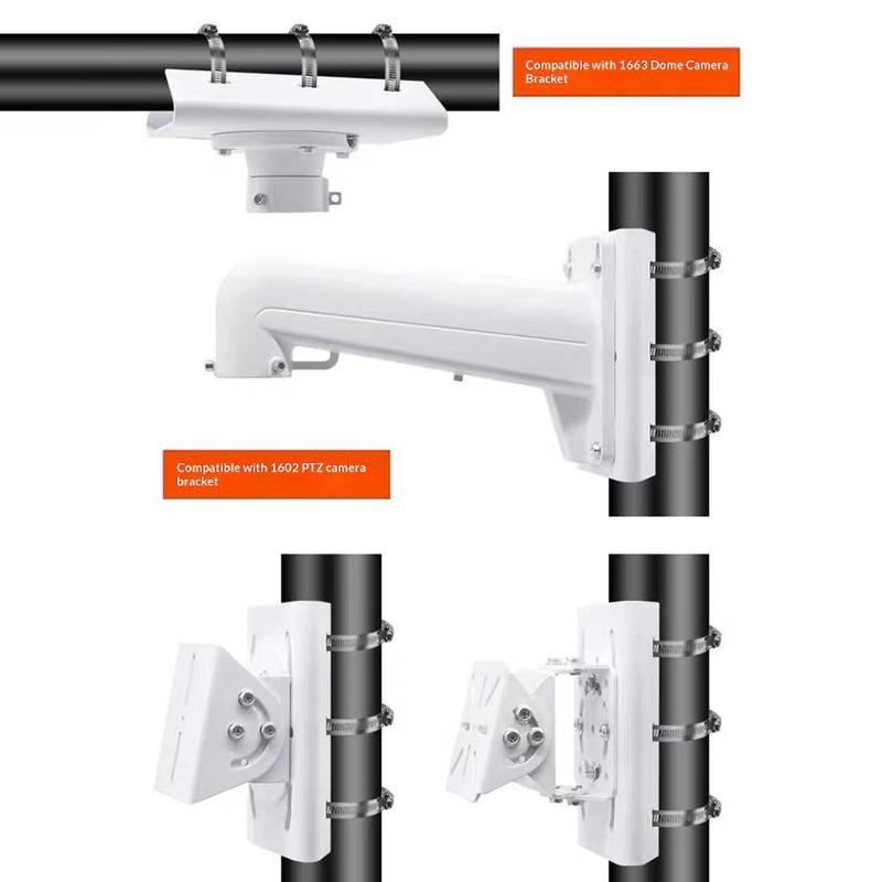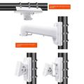 De beugel is ontworpen om met de meeste bewakingscamera's te werken en ondersteunt installatie op elektriciteitspalen, ronde palen en hoeken van muren. Alle benodigde installatieaccessoires worden meegeleverd, zodat de installatie eenvoudig is.
