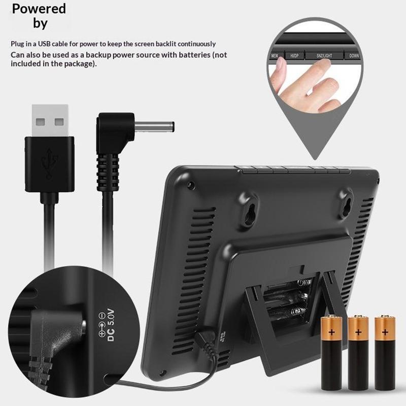 Het weerstation kan via USB worden gevoed voor continu gebruik van het display en de achtergrondverlichting, terwijl de batterijback-up ervoor zorgt dat het apparaat blijft werken tijdens stroomonderbrekingen. Deze dubbele stroomvoorziening zorgt voor extra betrouwbaarheid en flexibiliteit, vooral voor gebruikers die een stabiel display willen met extra back-upondersteuning.