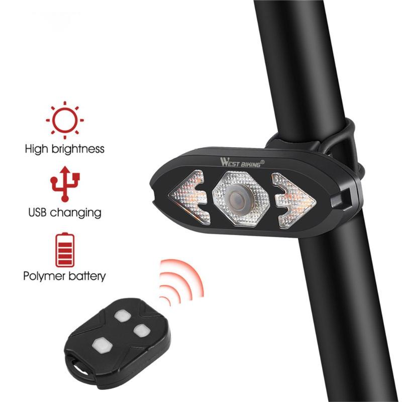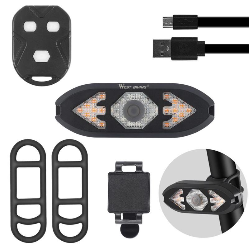 West Biking Draadloze Afstandsbediening Fietsachterlicht met Richtingaanwijzers & Claxon - USB Oplaadbaar