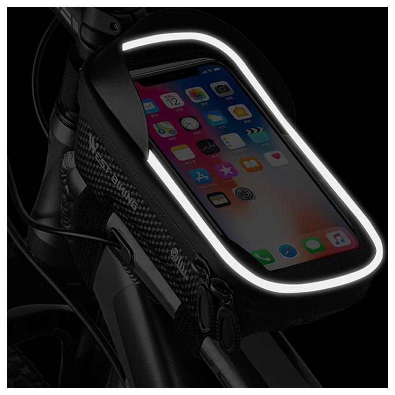 Een handige smartphonehouder met een zeer gevoelige en transparante voorkant van TPU. De West Biking fietskoffer is gemaakt van regenbestendig materiaal en heeft een dubbele waterdichte ritssluiting, zodat je je geen zorgen hoeft te maken over je benodigdheden als je in de regen gaat rijden. Bovendien is de West Biking-fietskoffer voorzien van een zonneklep aan de voorkant die een deel van het licht effectief blokkeert om uw smartphone te bereiken. Het is ook ontworpen met reflecterende strips aan de zijkanten voor veiliger rijden 's nachts.