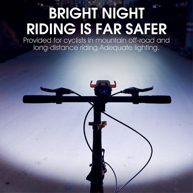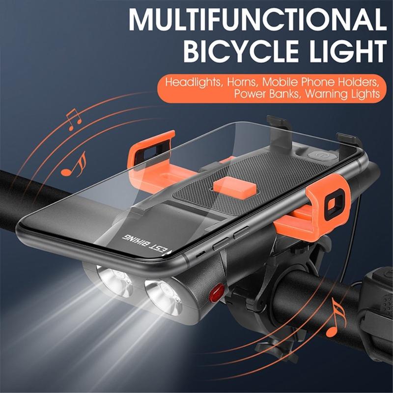 5-in-1 functie: powerbank, fietsvoorlicht, mobiele telefoonhouder, claxon, waarschuwingslicht