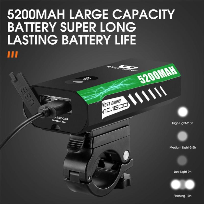 WEST BIKING YP0701329 1600LM Heldere LED Bike Front Light Fiets nacht fietsen veiligheidslamp Zaklamp