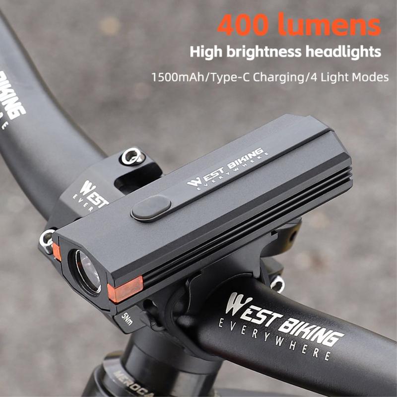 WEST BIKING YP0701407 kunststof fietskoplamp 400LM nacht fietsen zaklamp fiets voorlicht - zwart