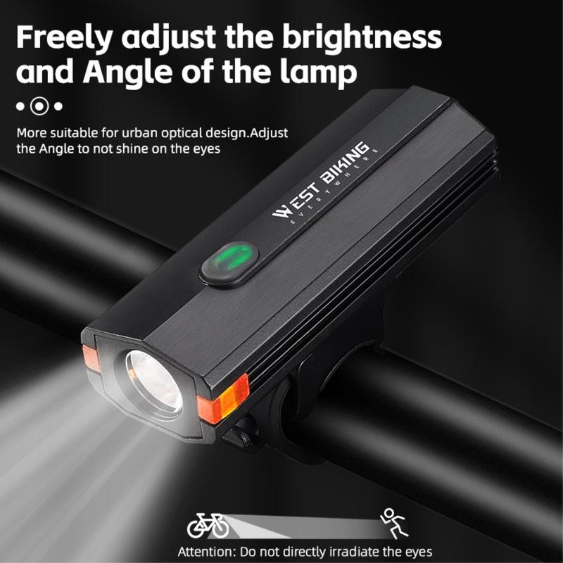WEST BIKING YP0701407 kunststof fietskoplamp 400LM nacht fiets zaklamp fiets voorlicht - geel