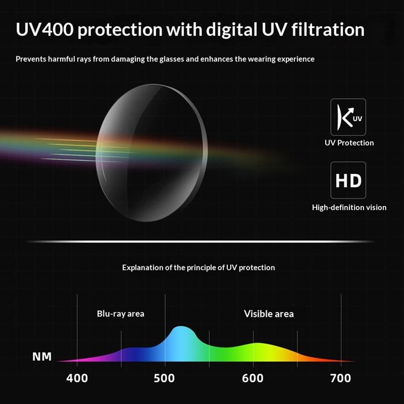 - UV400-gecoate PC-lenzen helpen UVA/UVB-straling tegen te houden en verminderen schittering in heldere omstandigheden