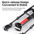 De zadelbuisklem en de steunstangklem hebben een quick-release ontwerp