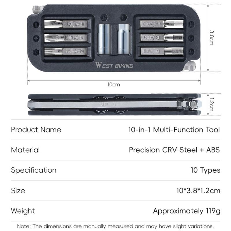 West Biking YP0719446 10-in-1 Draagbaar Fietsreparatiegereedschap / Multifunctionele Combinatiesleutel