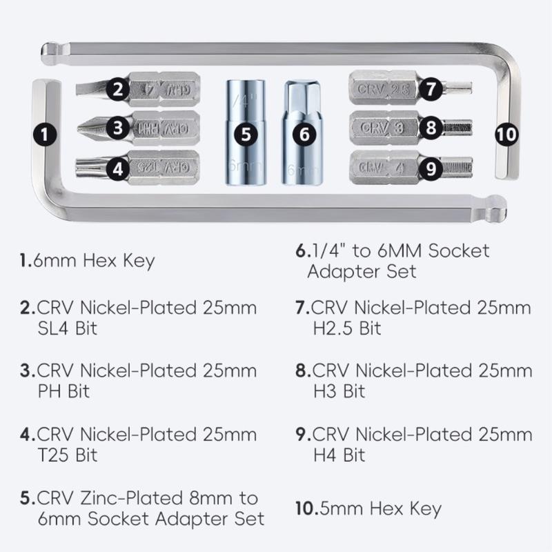 - 10-in-1 ontwerp: Bevat inbussleutels, schroevendraaiers en ander gangbaar reparatiegereedschap voor veelzijdig gebruik.