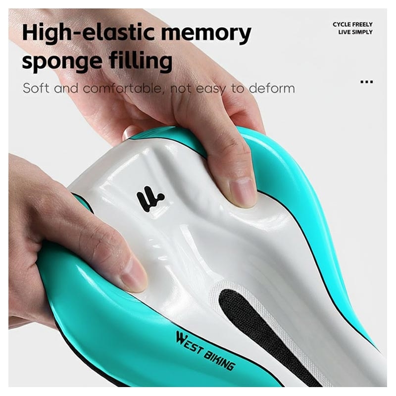 Maak uw ritten comfortabeler met de WEST BIKING YP0801256 fietszadelhoes. Deze hoes is gemaakt van zacht rebound-traagschuim en heeft een waterdicht PU-oppervlak, waardoor de druk op het zadel wordt verminderd en het comfort tijdens langere ritten wordt verbeterd. De ergonomische 3D-vorm met hol ademend gaas ondersteunt de luchtstroom om warmteophoping te verminderen, terwijl het grote antislip siliconen gedeelte de hoes stabiel houdt tijdens het fietsen. De duurzame Oxford-stofstructuur zorgt voor extra slijtvastheid, waardoor het een praktische upgrade is voor racefietsen en vele andere soorten fietsen.