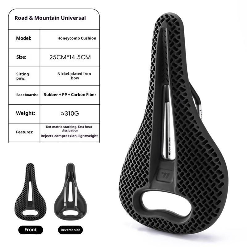 Fiets comfortabeler met het West Biking-fietszadel met honingraatstructuur en holle vorm. Dit lichtgewicht zadel is ontworpen voor racefietsen en mountainbikes en combineert een 3D-honingraatstructuur, een drukverlagend hol ontwerp en gerichte dempingszones om het comfort tijdens zowel korte als langere ritten te verbeteren.