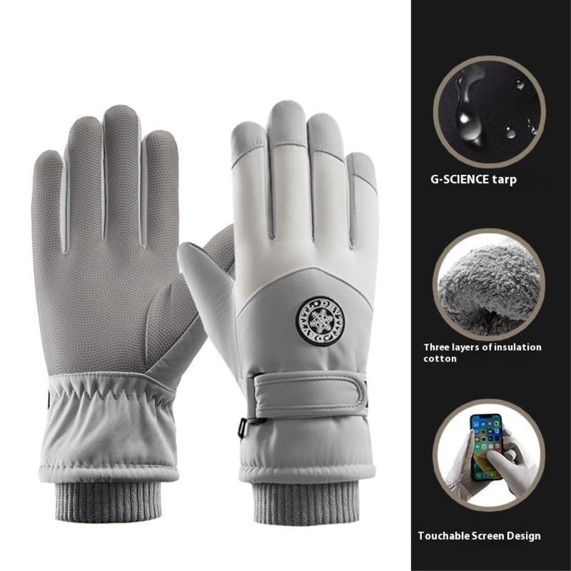 Windproof Outdoor Winter Touch Screen Gloves - Women - Grey / White