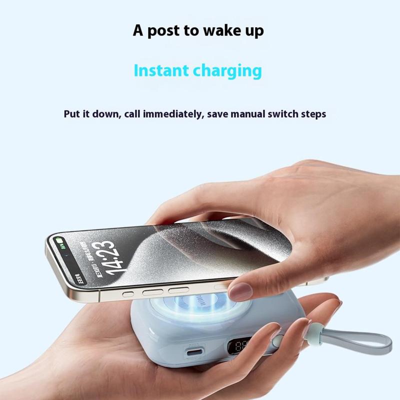 WIWU Wi-P041 Magnetische draadloze Power Bank met ingebouwde USB-C kabel - 15W, 9600mAh
