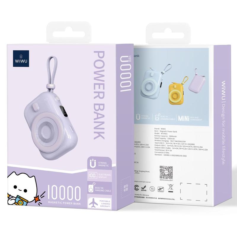 • WIWU Wi-P041 Magnetische draadloze Power Bank met ingebouwde USB-C kabel - 15W, 9600mAh