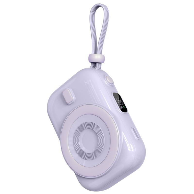 WIWU Wi-P041 Magnetische Draadloze Power Bank met USB-C kabel - 15W/9600mAh - Paars