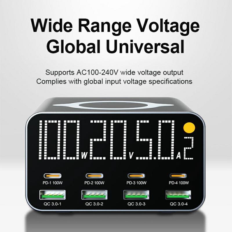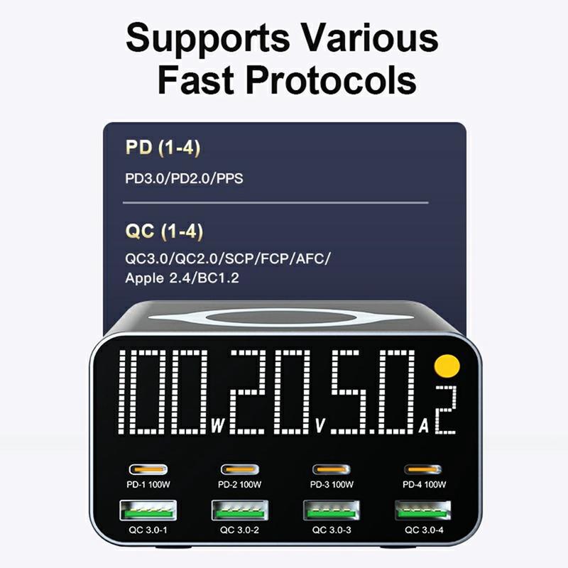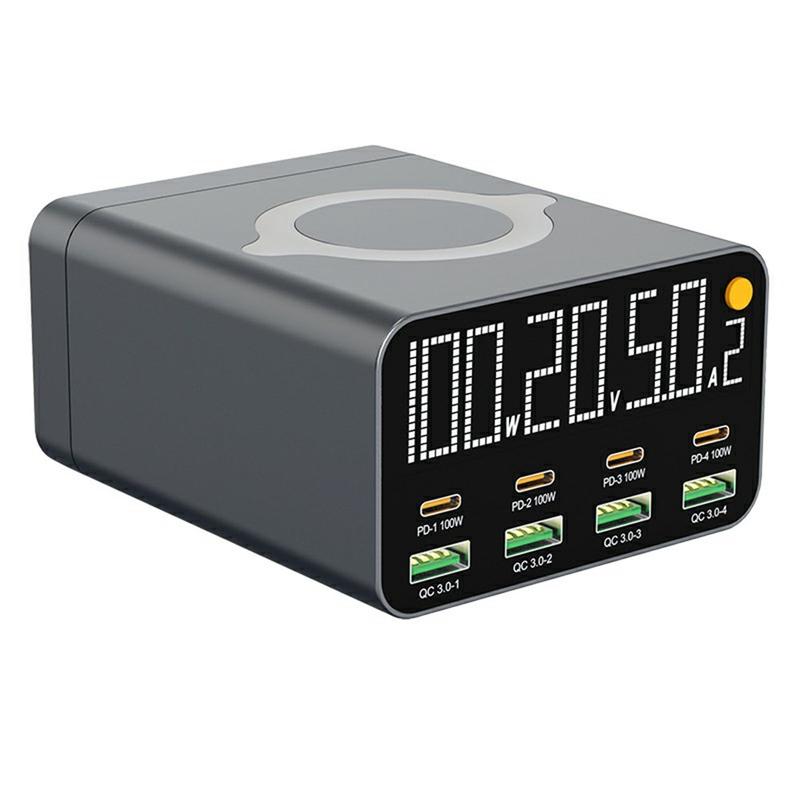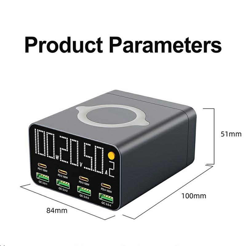 • WLX-M1 120W Desktop Laadstation - 8-poorts GaN USB-C snellader met draadloos laden (EU-stekker)