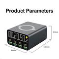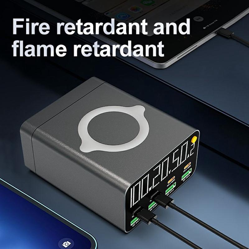 Een geïntegreerd 5-15W draadloos oplaadpad voegt extra gemak toe voor Qi-geschikte smartphones en oordopjes. De GaN-chipset zorgt voor betere thermische controle, hogere efficiëntie en kleinere afmetingen, terwijl compatibiliteit met wereldwijde voltages (AC 100-240V) hem ideaal maakt voor reizen en internationaal gebruik.