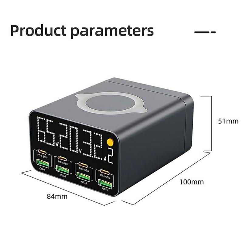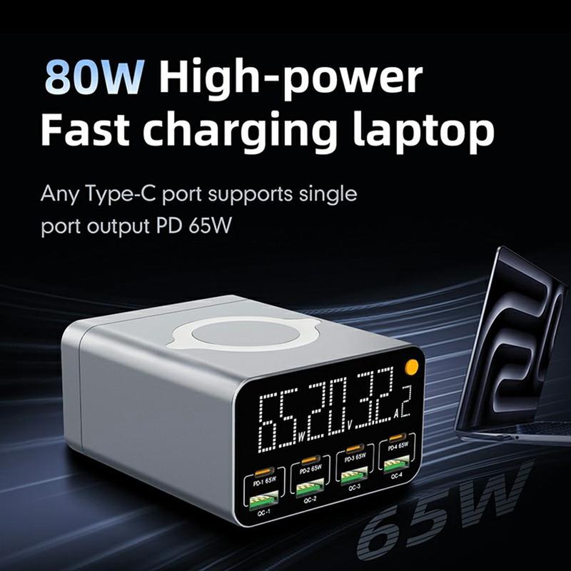 • WLX-M3 80W 9-in-1 GaN Desktop Oplaadstation - Multi-Port USB-C/USB Snellader met Draadloos Opladen (EU Stekker)