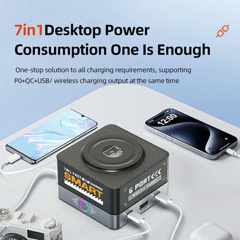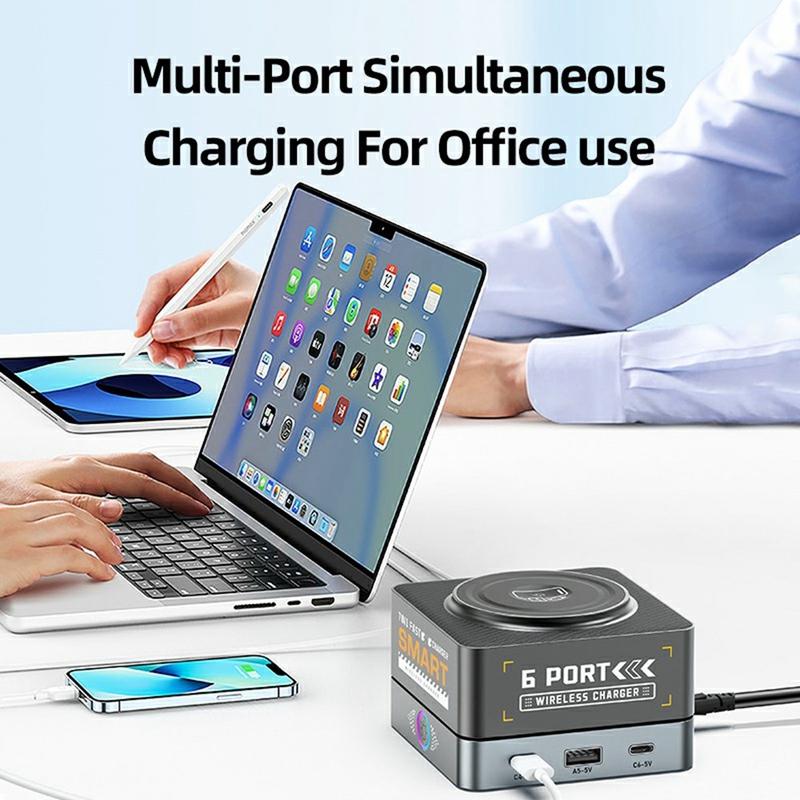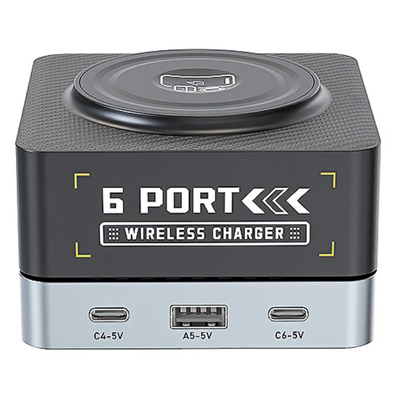 7-in-1 opladen met 6 poorten + magnetisch draadloos pad
