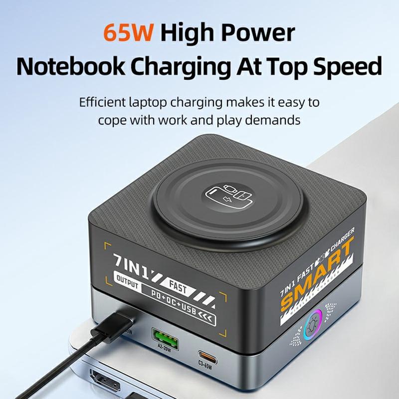 De WLX-R8C 7-in-1 desktoplader combineert krachtig snelladen, magnetisch draadloos opladen en het gemak van meerdere poorten in één compacte power hub. Met een totale output van 80W en ondersteuning voor PD, QC en PPS laadt deze lader laptops, tablets, telefoons en accessoires in één keer op - perfect voor werkplekken, thuiskantoren en op reis.