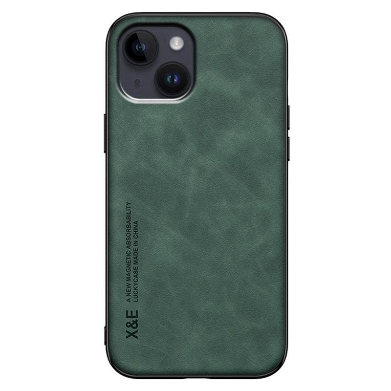 X&E voor iPhone 14 Plus Skin-touch gevoel leer gecoat TPU telefoonhoesje beschermende mobiele telefoon achterkant met ingebouwde metalen plaat