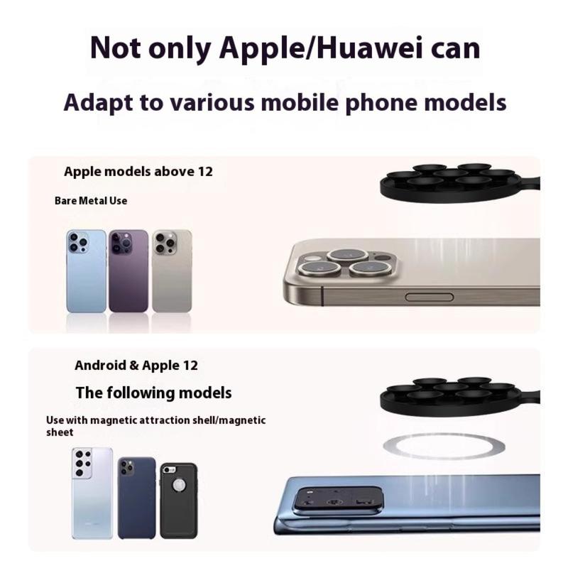 Twaalf N52 neodymium magneten werken samen met een dichte siliconen zuignap om je telefoon binnen enkele seconden vast te zetten op glas, tegels, metaal of glanzende dashboards. Het gesloten magnetische veld houdt apparaten tot 1 kg vast zonder de GPS- of 5G-ontvangst te verstoren, terwijl de vacuümvormige cup zelfs op hobbelige wegen grip biedt.
