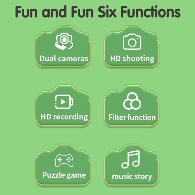 De X12S Kids Camera is een spannende en veelzijdige gadget die is ontworpen om de creativiteit en het plezier van jonge fotografen te stimuleren. Deze CE-gecertificeerde camera heeft een charmant drakenontwerp en biedt meerdere functies, waaronder het maken van foto's, het opnemen van video's, het afspelen van muziek en spelletjes. Compact en kindvriendelijk, de perfecte metgezel voor kleine avonturiers.