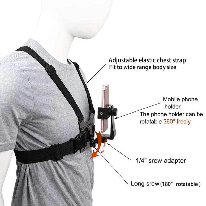 XD-27 Action Camera Borstband met Telefoonhouder - Verstelbare nylon borstband voor GoPro en smartphones