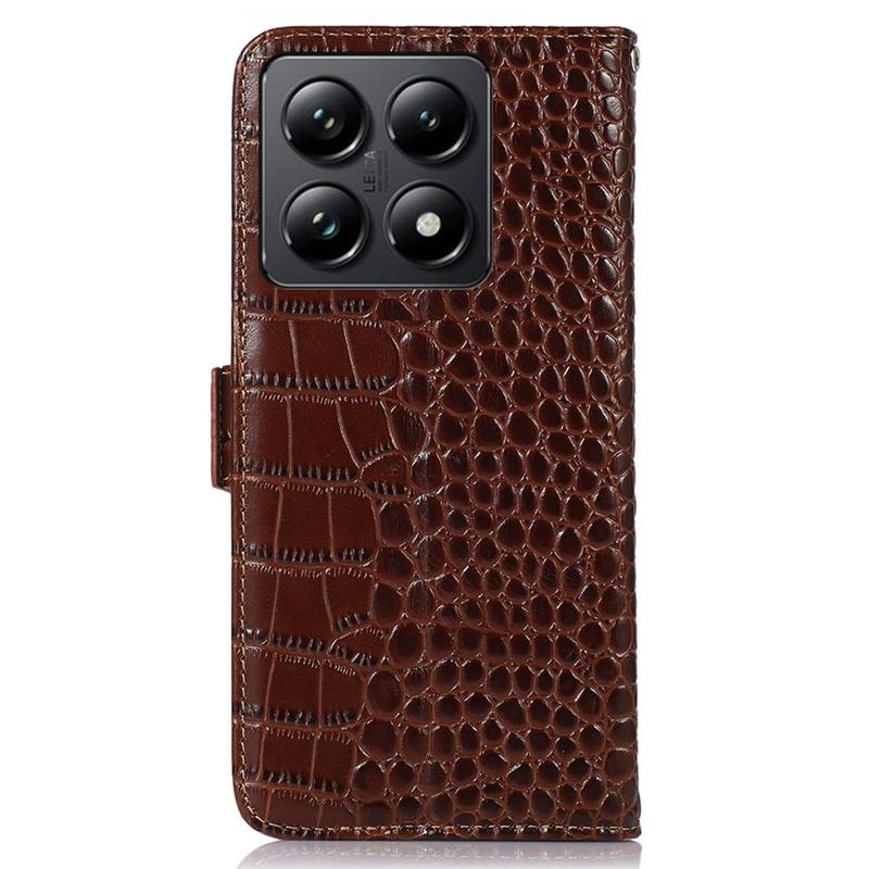 Xiaomi 14T Pro Crocodile Series Wallet Leren Hoesje met RFID - Bruin