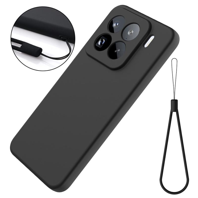Xiaomi 15 Pro Vloeibare siliconen hoesje met polsbandje - Zwart