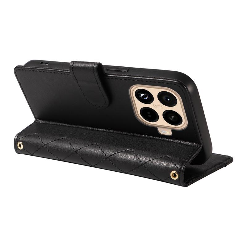 Bescherm je Xiaomi 15T Pro met deze luxe gewatteerde portemonneehoes. Gemaakt van TPU-materiaal met een PU-leercoating, is deze hoes krasbestendig en anti-vingerafdruk, waardoor je telefoon er stijlvol en strak uitziet. De stiklijn vormt een ruitvormig rasterpatroon, wat de hoes een modieuze en mooie uitstraling geeft. De opstaande rand van de camera en het scherm biedt effectieve bescherming tegen krassen, terwijl de precieze uitsparingen volledige toegang bieden tot alle knoppen, poorten en andere functies. Het portemonneeontwerp zorgt voor eenvoudig opbergen van belangrijke pasjes en contant geld. Deze hoes biedt extra bescherming tegen krassen, stoten, vallen en dagelijkse schade en wordt geleverd met een schouderband en polsband voor extra gemak.