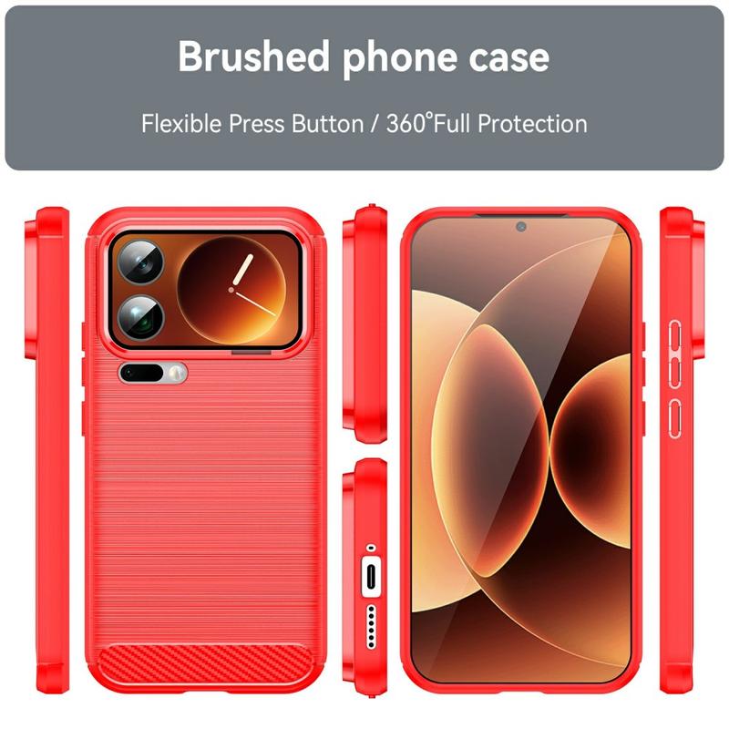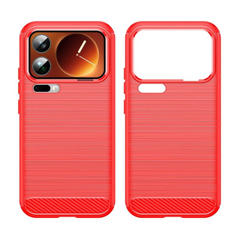 Xiaomi 17 Pro Max Geborsteld TPU Hoesje - Koolstofvezel - Rood