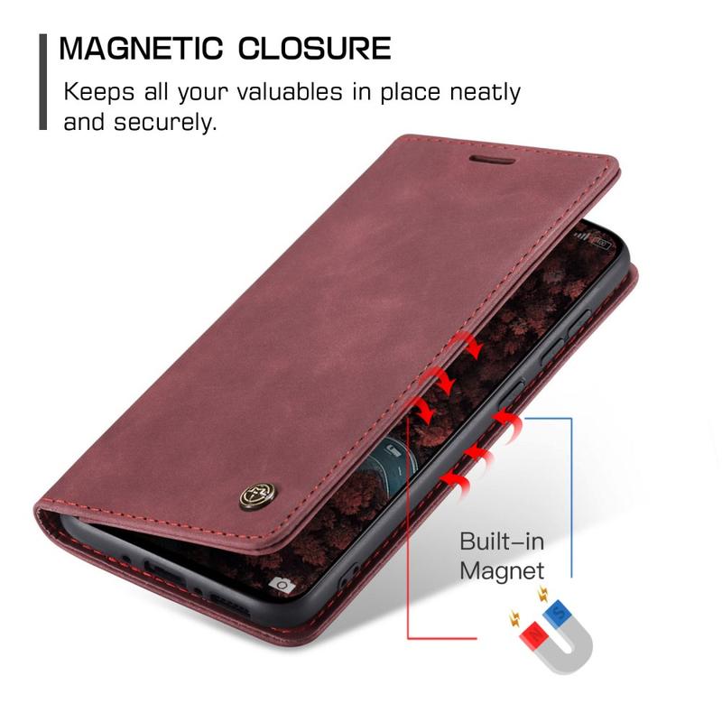 - Ingebouwde magneten houden de Caseme 013-serie portemonnee-etui gesloten