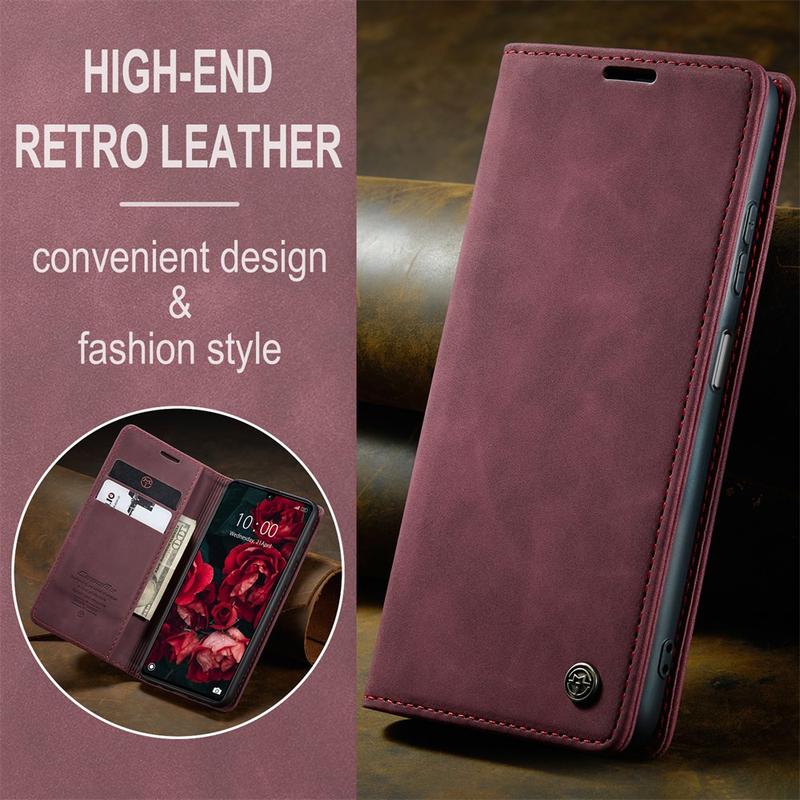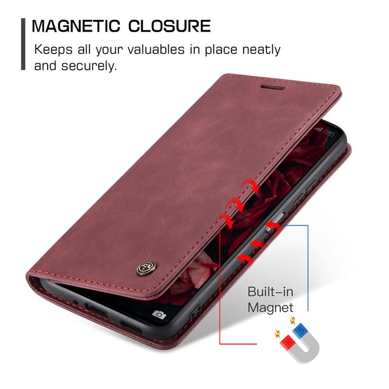 - Ingebouwde magneten houden de Caseme 013-serie portemonnee-etui gesloten