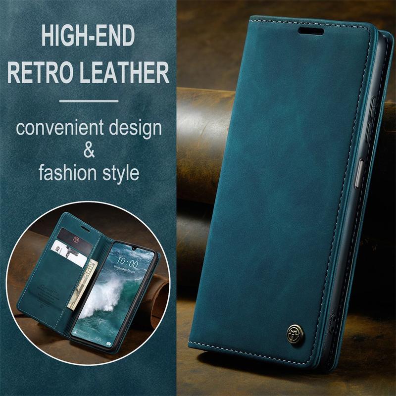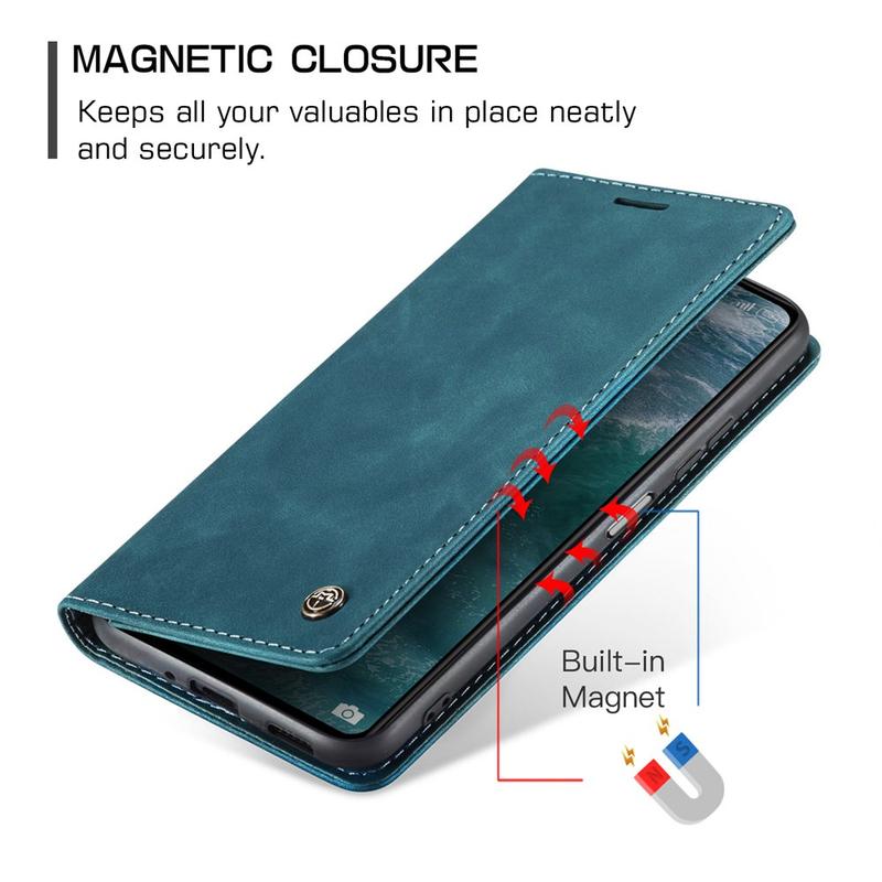 - Ingebouwde magneten houden de Caseme 013-serie portemonnee-etui gesloten