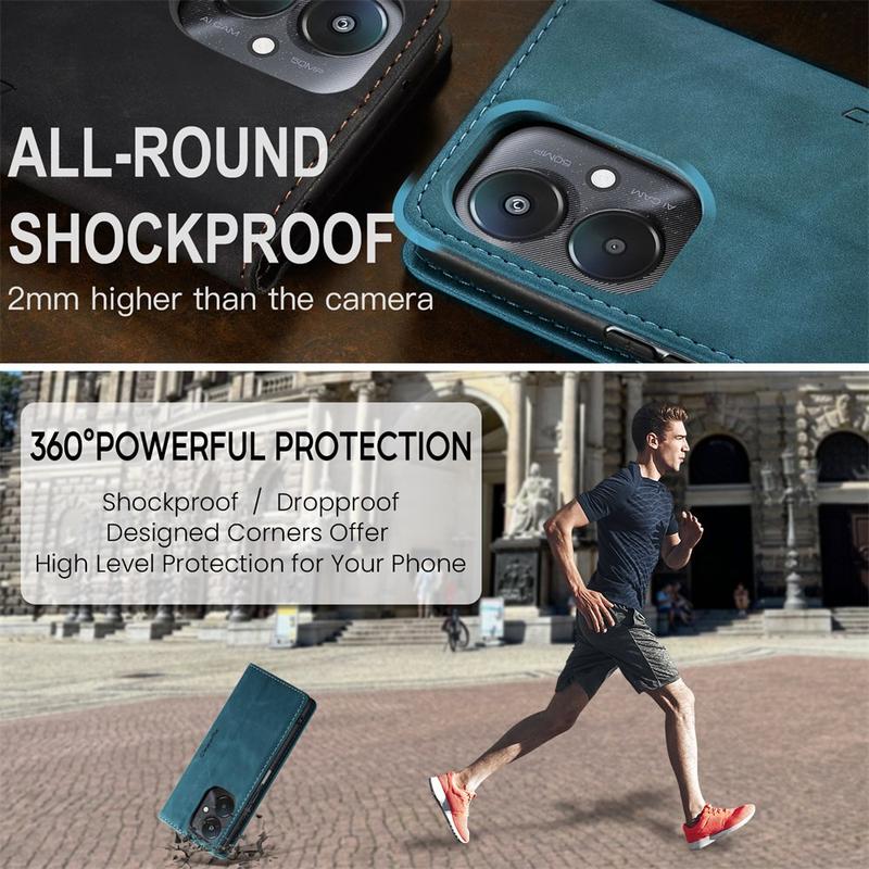 Een combinatie van TPU en polyurethaan biedt volledige bescherming voor Xiaomi Redmi 13C 5G, Poco C65 en beschermt deze tegen stof, vuil, stoten, krassen en dagelijkse slijtage. Magnetische aantrekkingskracht houdt de behuizing gesloten en het slimme ontwerp maakt handsfree gebruik mogelijk tijdens het bekijken van media-inhoud.