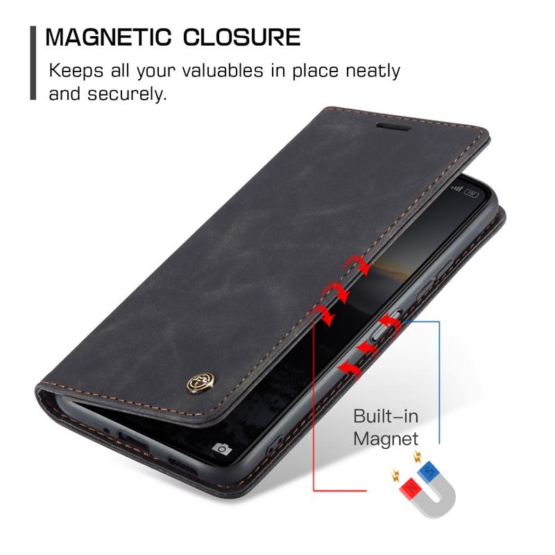 - Ingebouwde magneten houden de Caseme 013-serie portemonnee-etui gesloten