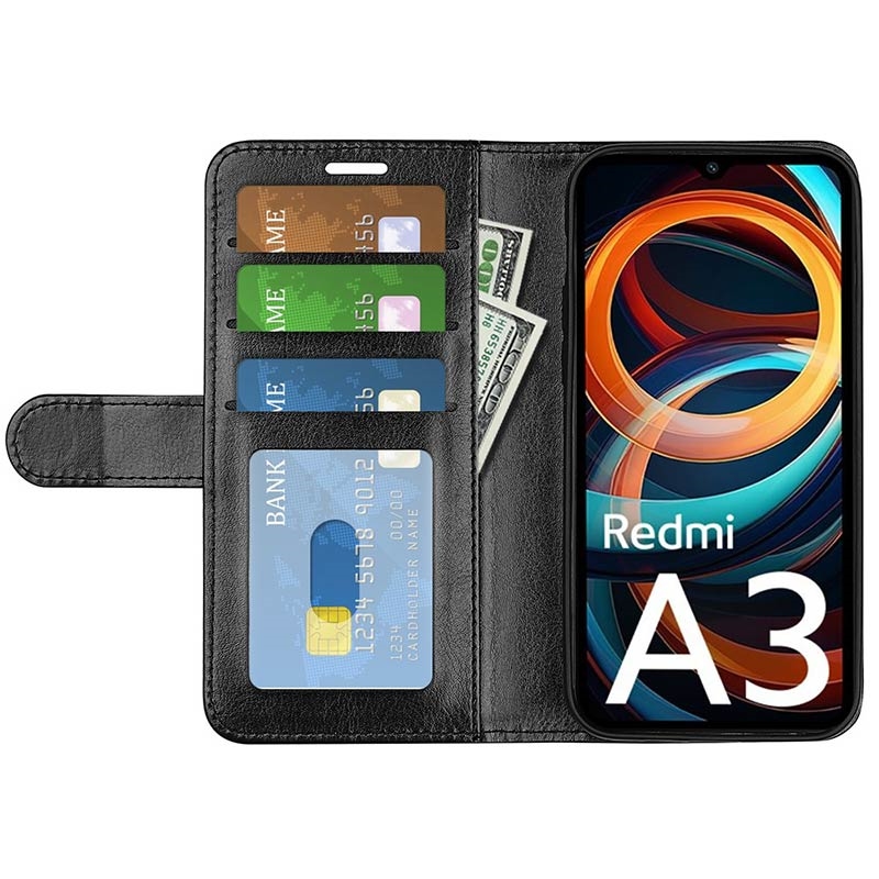 - Xiaomi Redmi A3 portemonnee hoesje heeft ook vakken voor contant geld en pasjes
