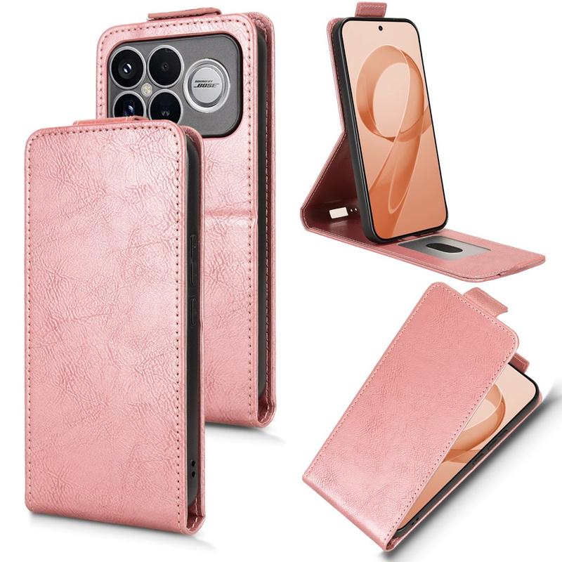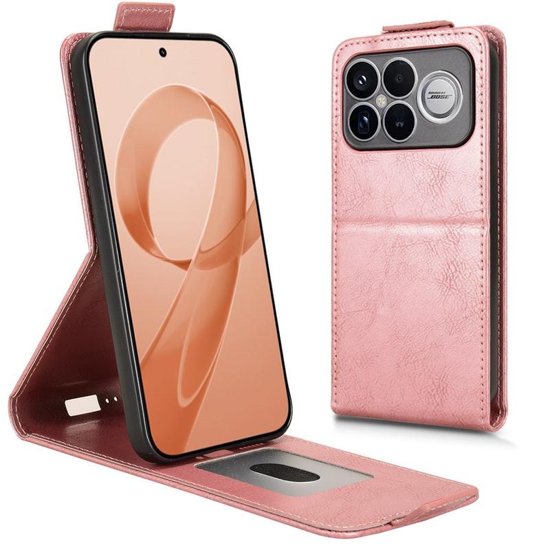 Xiaomi Redmi K90 Pro Max/Poco F8 Ultra Verticale Flip Hoesje met standaard - Roségoud