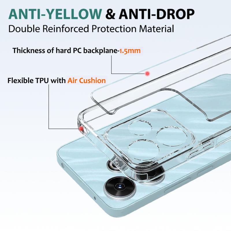Dit accessoire maakt gebruik van een combinatie van acryl en TPU om je smartphone in ongerepte staat te houden. Ondertussen voorkomen de versterkte, schokabsorberende hoeken valschade, terwijl het transparante ontwerp het prachtige ontwerp van je Xiaomi Redmi Note 13R laat zien.