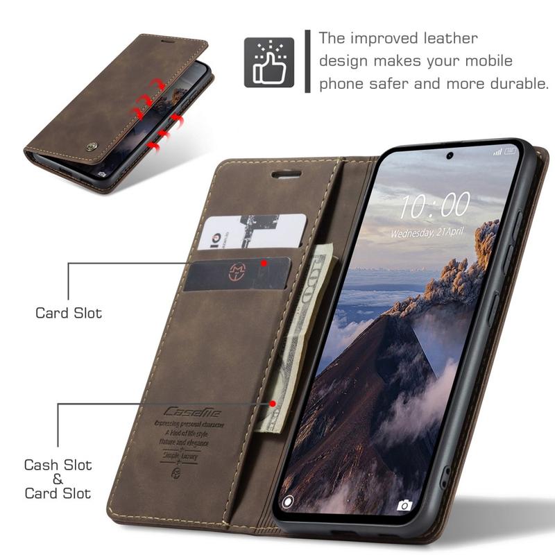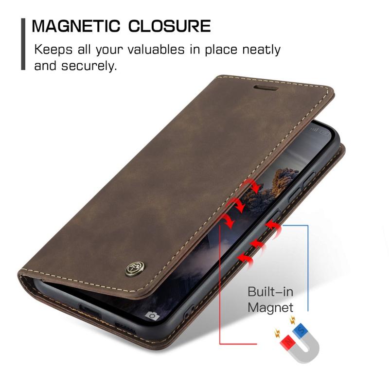 - Ingebouwde magneten houden de Caseme 013-serie portemonnee-etui gesloten