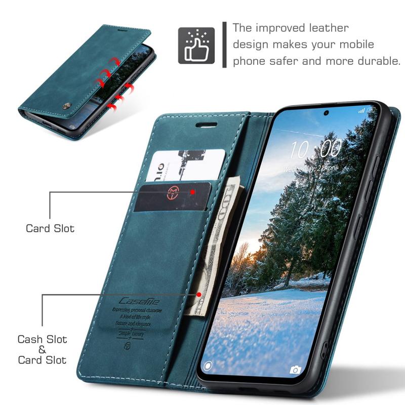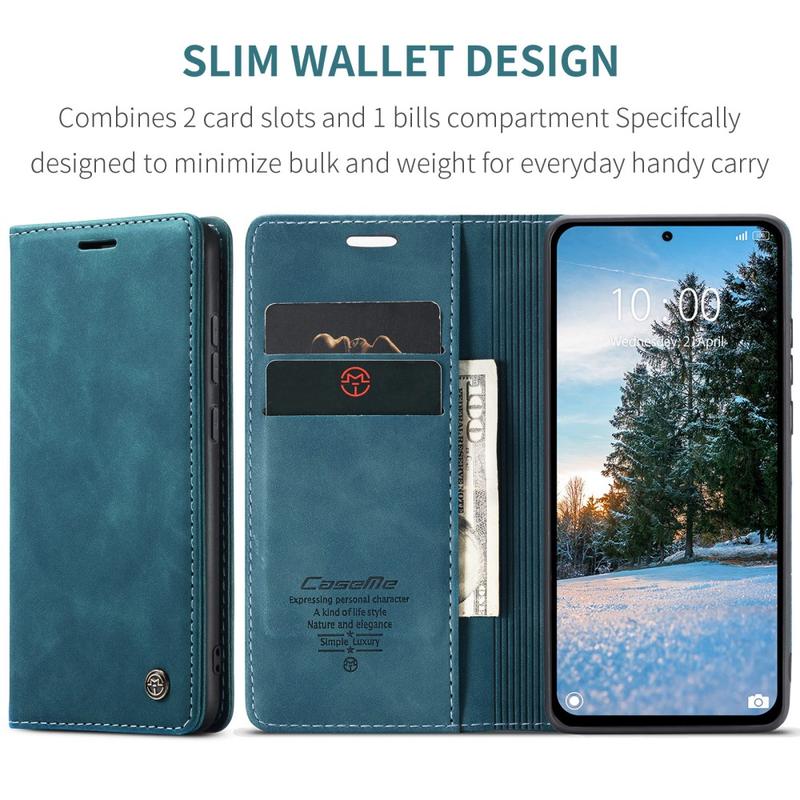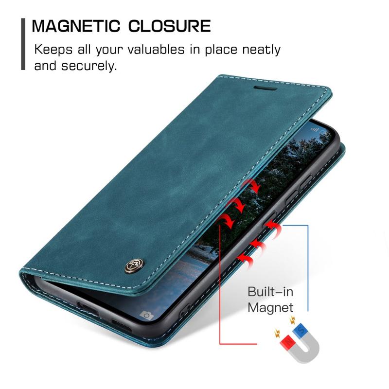 - Ingebouwde magneten houden de Caseme 013-serie portemonnee-etui gesloten