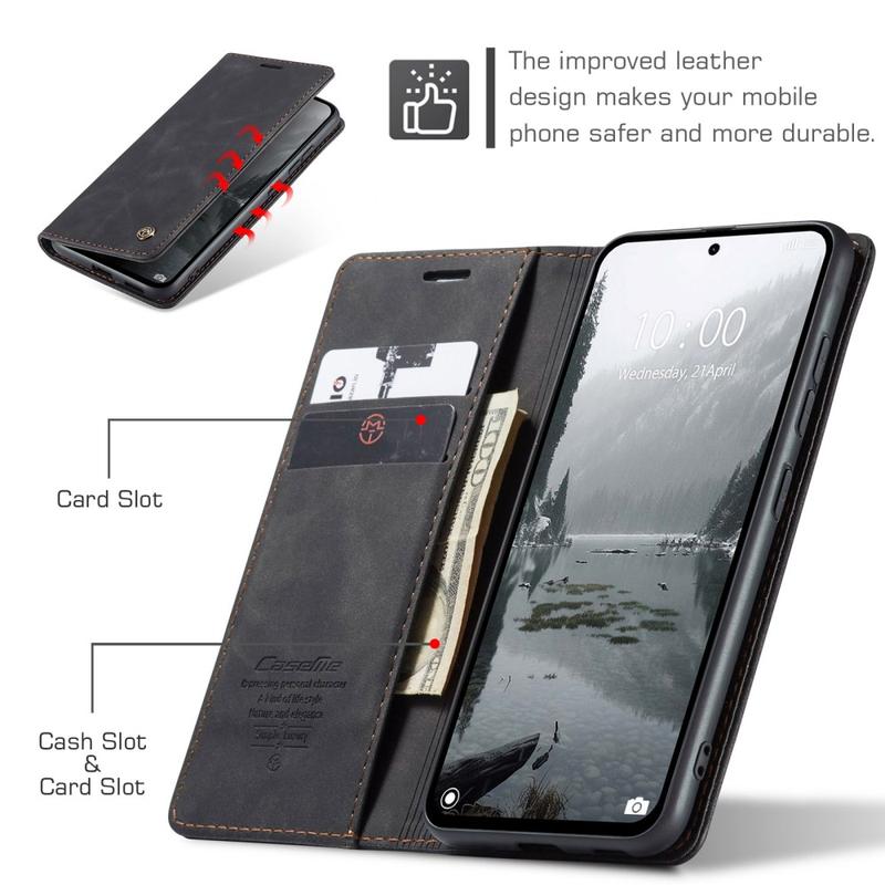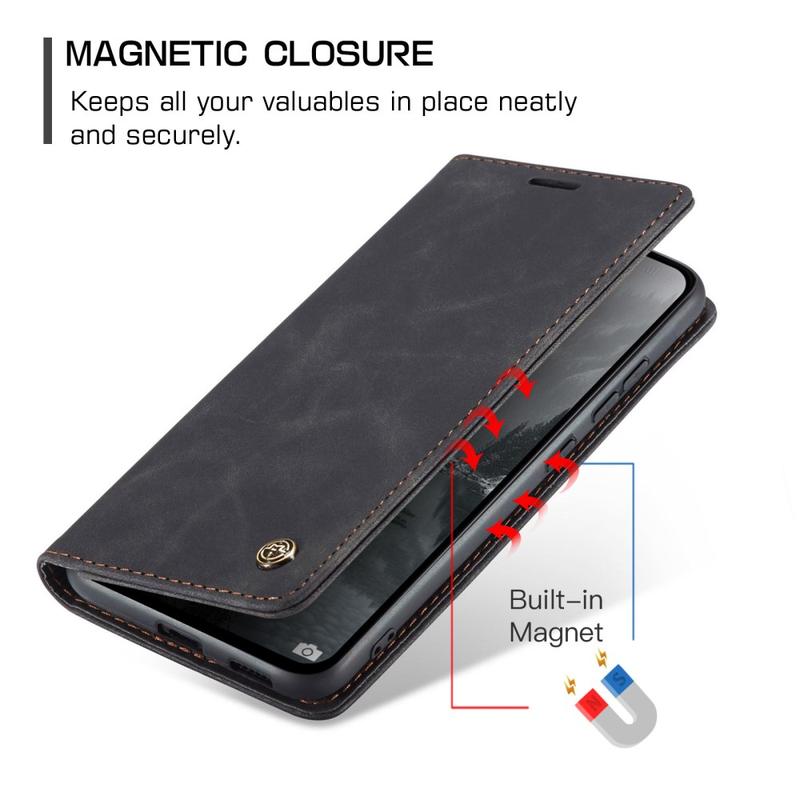 - Ingebouwde magneten houden de Caseme 013-serie portemonnee-etui gesloten