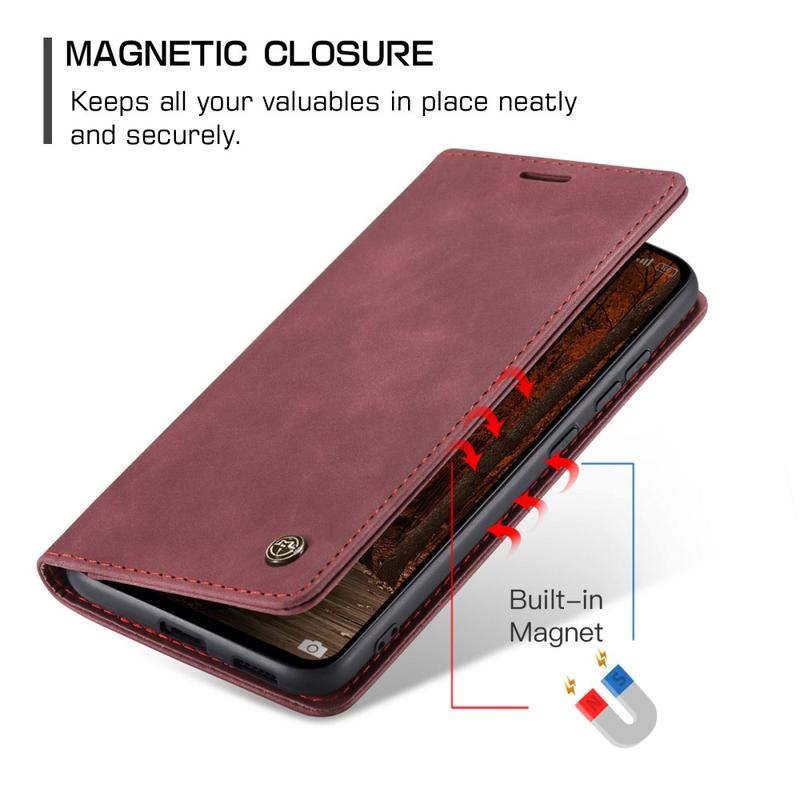 - Ingebouwde magneten houden de Caseme 013-serie portemonnee-etui gesloten