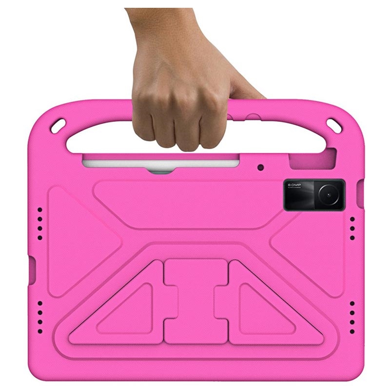 Het is gemaakt van slagvast, milieuvriendelijk, niet-giftig EVA-materiaal dat hoeken en verhoogde rand versterkt die het scherm beschermt tegen krassen en verbrijzeling. De standaard aan de achterkant van deze fantastische hoes voor Xiaomi Redmi Pad maakt comfortabel handsfree video kijken mogelijk, terwijl de draagbeugel de hoes nog praktischer en spannender maakt voor de kinderen.